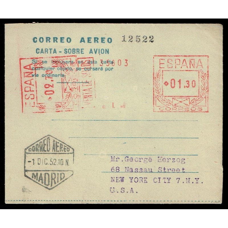 Aerogramme mit mechanischer Frankatur. Typ A. 1952 Madrid-New York (USA).
