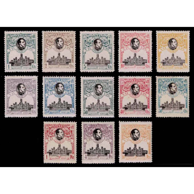 7. Weltpostcongreß in Madrid. König Alfons XIII und Gebäude der Post und Verkehrsverwaltung.