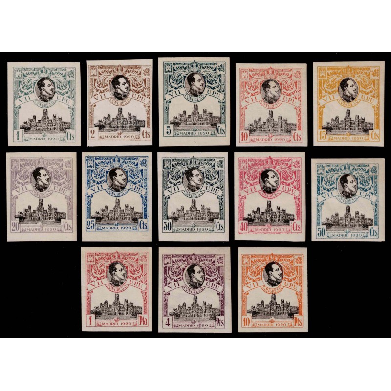 7. Weltpostcongreß in Madrid. König Alfons XIII und Gebäude der Post und Verkehrsverwaltung.