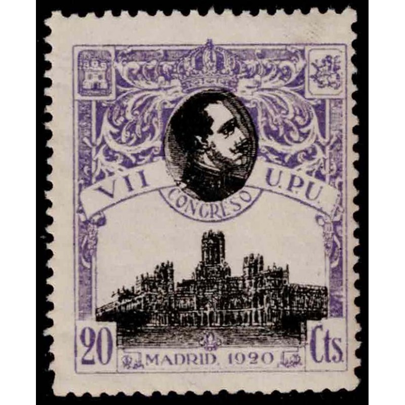 7. Weltpostcongreß in Madrid. König Alfons XIII und Gebäude der Post und Verkehrsverwaltung.