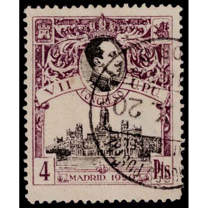 7. Weltpostcongreß in Madrid. König Alfons XIII und Gebäude der Post und Verkehrsverwaltung.