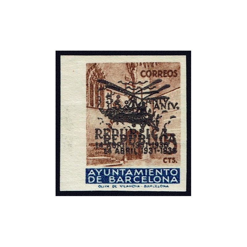 14. April. V Jahrestag der Republik. Gothic Tür des Rathauses mit Aufdruck "Républica".