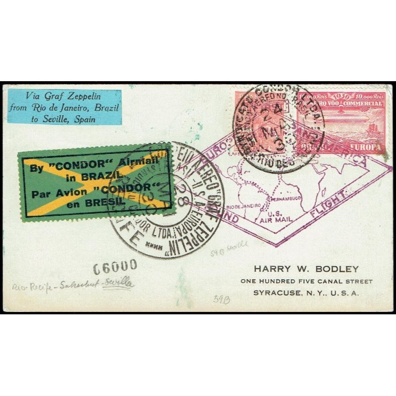 1930 Rio de Janeiro-Syracuse (New York, USA). Graf Zeppelin via Rio de Janeiro (Brasilien) nach Sevilla.