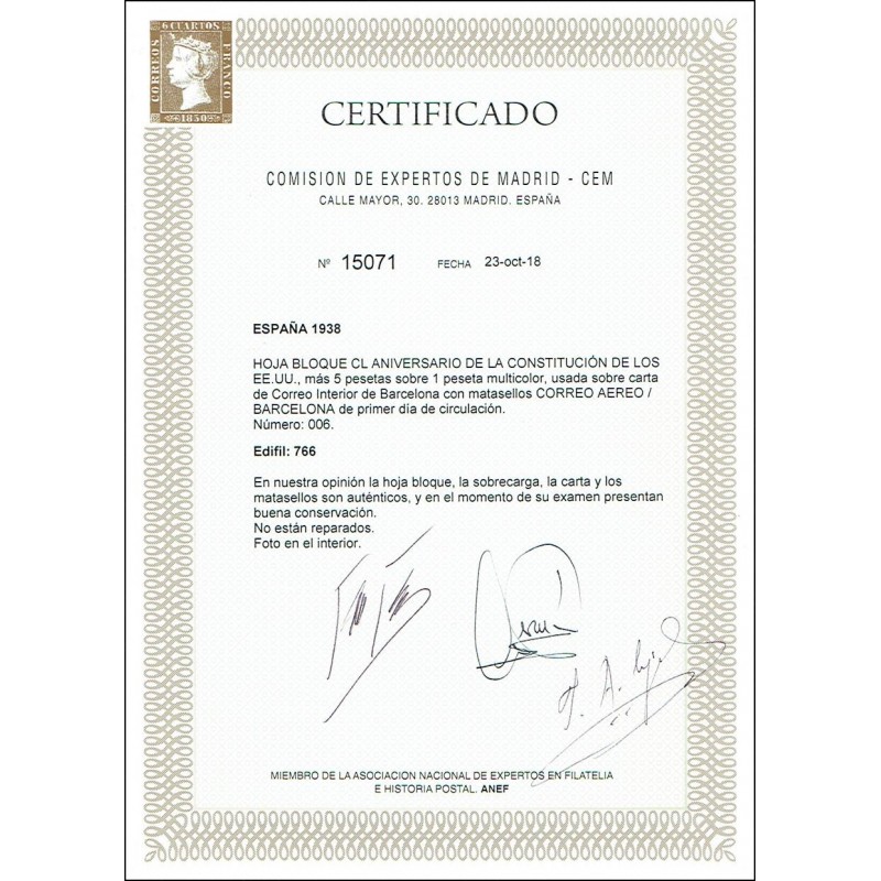 150. Jahrestag der Verfassung der USA. Flugpost. Blockausgabe.