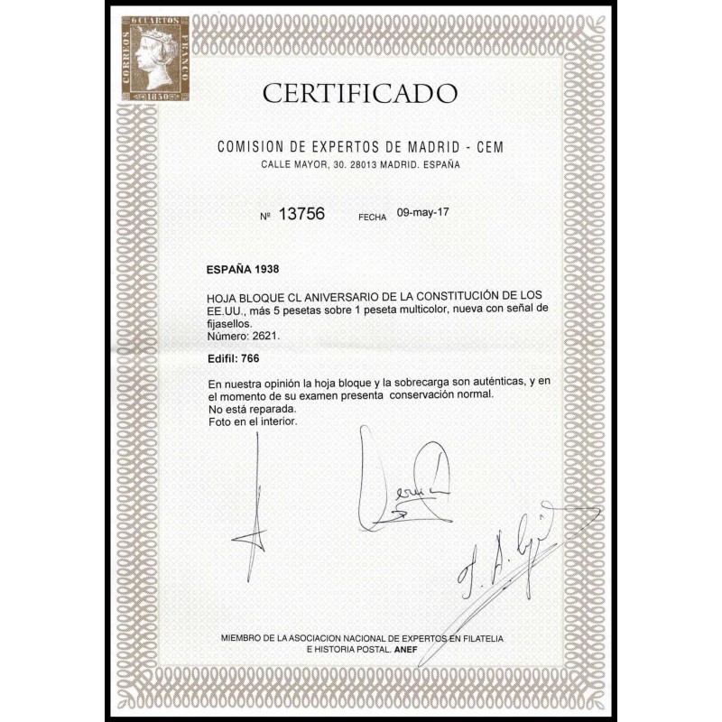 150. Jahrestag der Verfassung der USA. Flugpost. Blockausgabe.