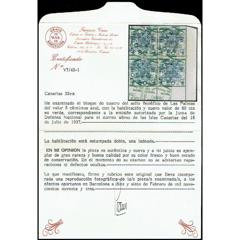 LOKALAUSGABEN UND KANARISCHE INSELN FLUGPOSTMARKEN>Kanarischen Inseln Flugpostmarken>1937 ED. Canarias 32hhd ** [x4]