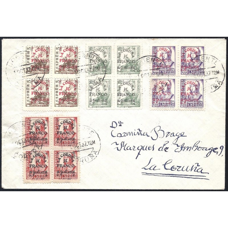 Nationale Briefmarken mit Aufdruck. 1937 Innenpost La Coruña.