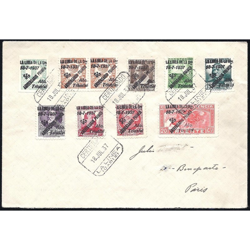 Republikanische Briefmarken mit Aufdruck. 18. Juli 1937. La Linea de la Concepcion- Paris (Frankreich).