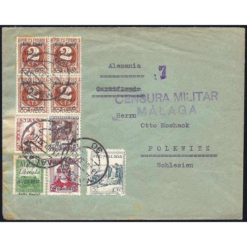 Republikanische Briefmarken mit Aufdruck. 1937 Malaga-Polkwitz (Schlesien, Deutschland).