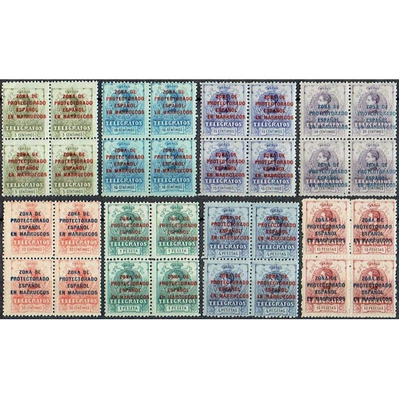 Spanische Telegrafmarken mit Aufdruck: "ZONA DE PROTECTORADO ESPAÑOL EN MARRUECOS". König Alfons XIII.