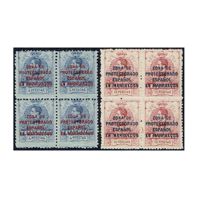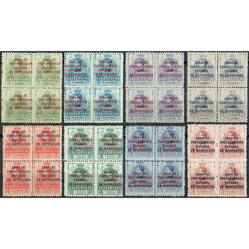 Spanische Telegrafmarken mit Aufdruck: "ZONA DE PROTECTORADO ESPAÑOL EN MARRUECOS". König Alfons XIII.