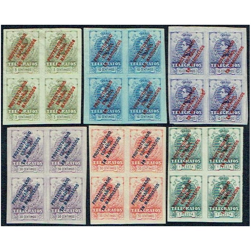 Spanische Telegrafmarken mit Aufdruck: "PROTECTORADO ESPAÑOL EN MARRUECOS". König Alfons XIII.