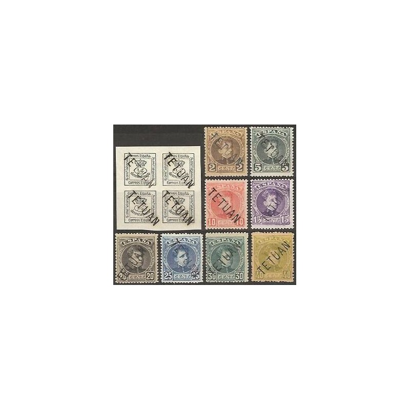 Spanische Marken mit Aufdruck. "TETUAN". König Alfons XIII. als Kadett.