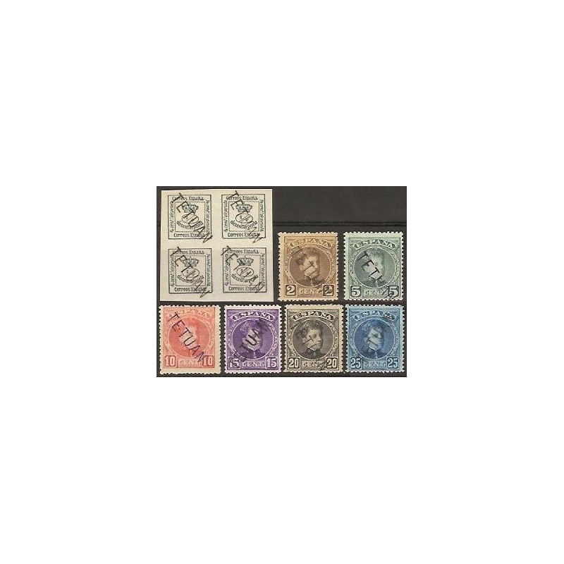 Spanische Marken mit Aufdruck. "TETUAN". König Alfons XIII. als Kadett.