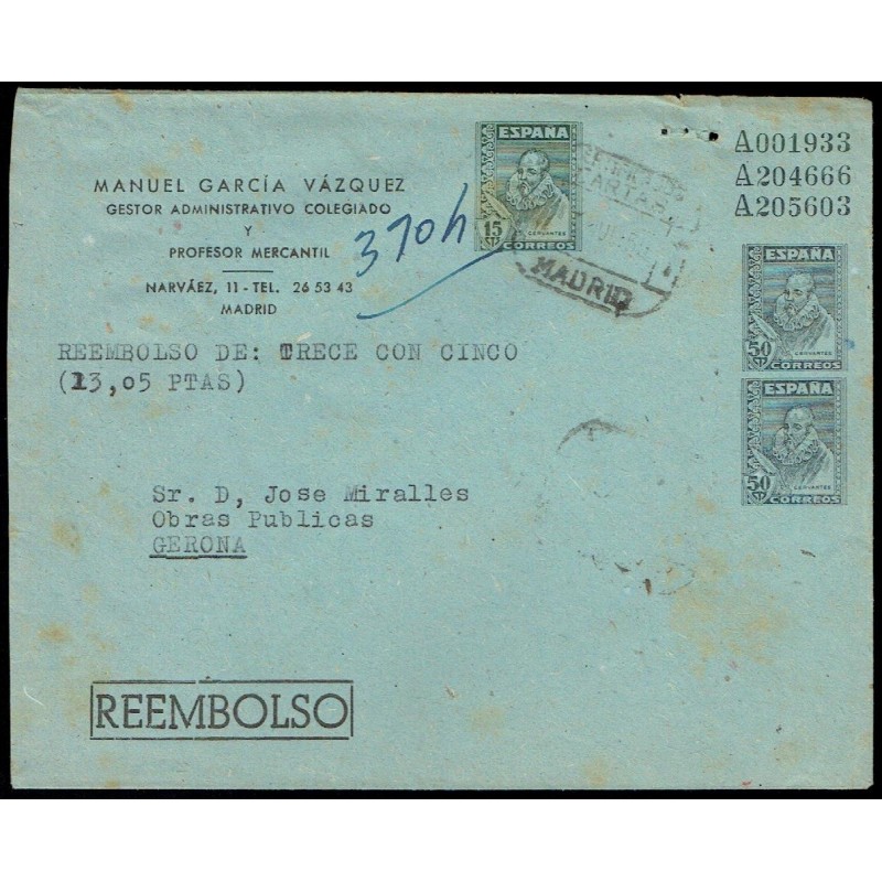 Spanischer Staat. Cervantes. MANUEL GARCÍA VÁZQUEZ. Narváez, 11. Madrid. 1950 Madrid-Gerona. Laiz 1484.