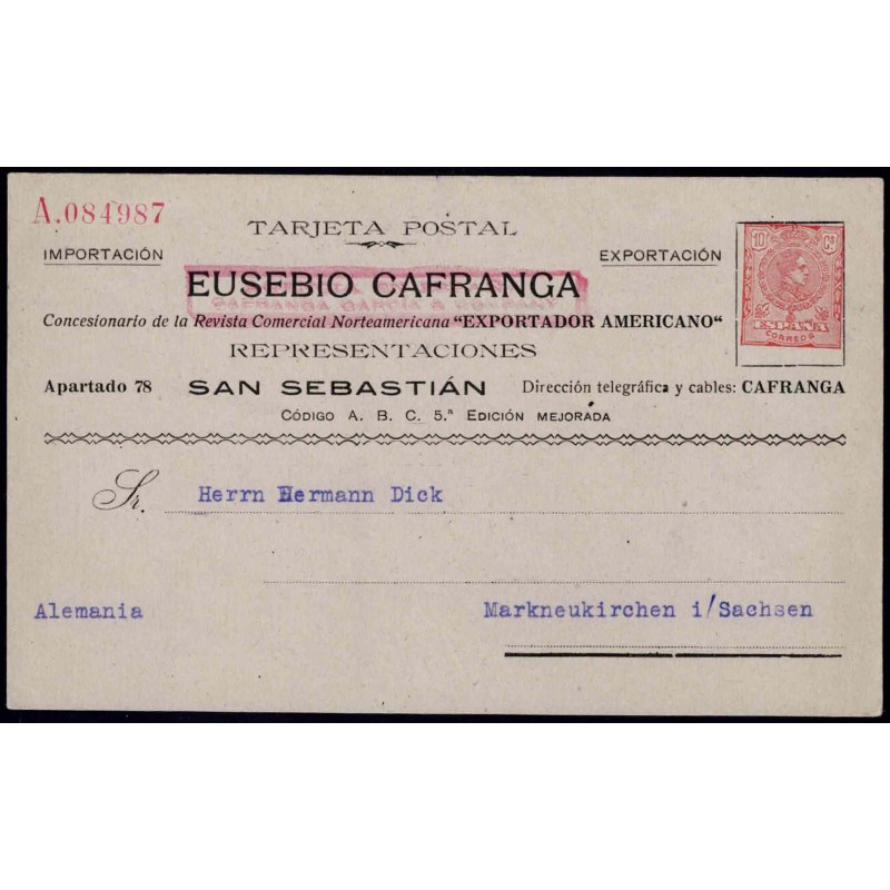Alfons XIII. Medaillon. EUSEBIO CAFRANGA. Apartado 78, San Sebastián. 1921 San Sebastián-Markneukirchen (Sachsen, Deutschland). Laiz 208.