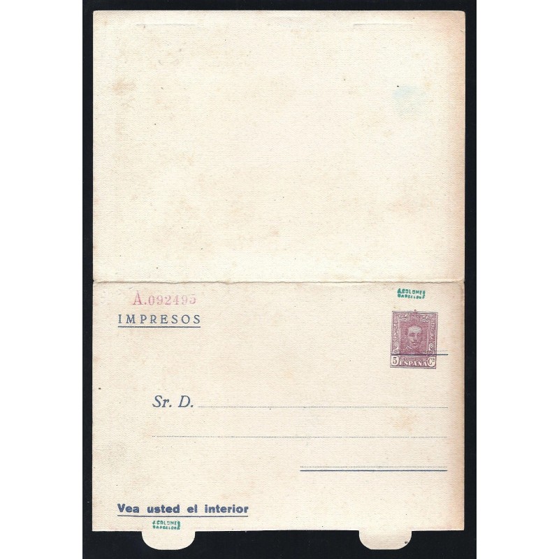 Alfons XIII. Vaquer. D. GARCÍA. Ferraz, 17. Madrid. Laiz 492.