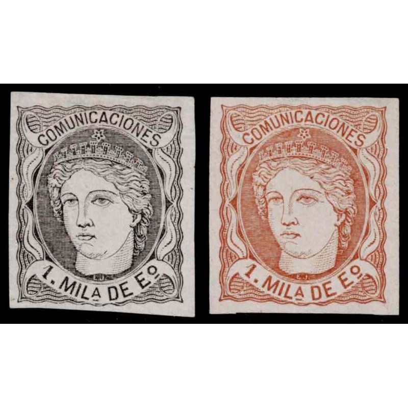 Hispania mit Mauerkrone. Galvez Proben Nr. 551 und 553.
