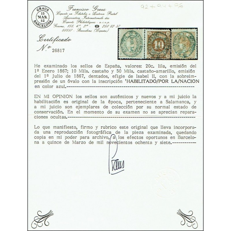 SPANIEN KLASSISCH>Handstempel-Aufdruck HABILITADO POR LA NACION>Salamanca>1868 ED. 092/096 * Salamanca (A)