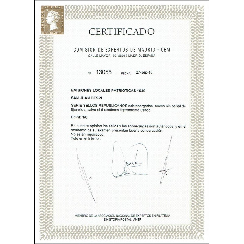 LOKALAUSGABEN UND KANARISCHE INSELN FLUGPOSTMARKEN>Nationale Lokalausgaben>San Juan Despí (Barcelona)>1939 ED. ELP San Juan Despí 1/8 **/us