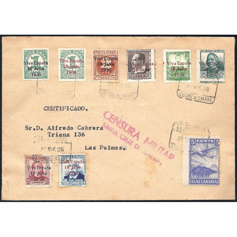 Republikanische Briefmarken mit Aufdruck. 1938 Santa Cruz de Tenerife-Las Palmas (Kanarische Inseln).