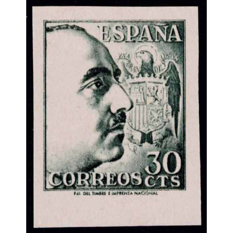 General Franco und Wappen von Spanien. Stecherzeichen unter dem Markenbild SANCHEZ TODA.