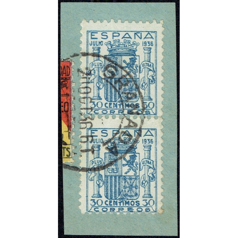 Wappen von Spanien zwischen Säulen und Schriftbänder. Ausgabe von Granada.