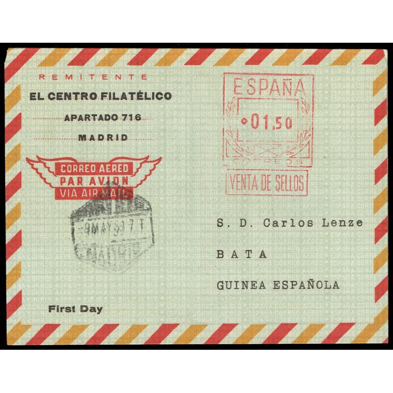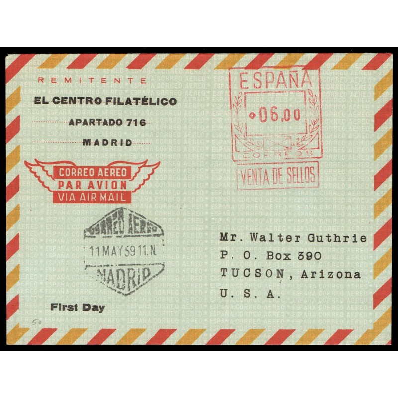 Aerograms with mechanic franking. Type G. From Madrid to various destinations in the first days of circulation.