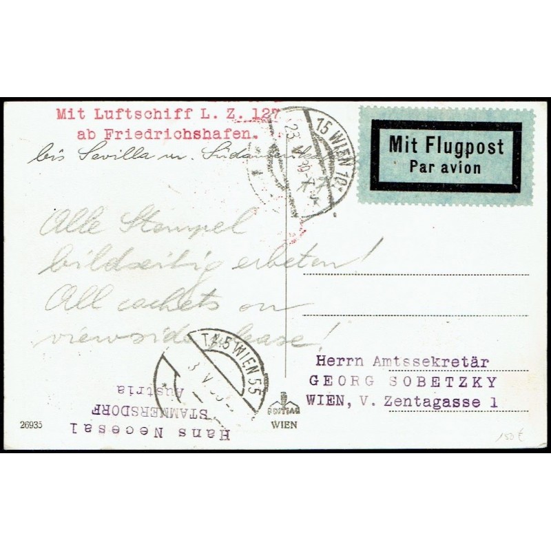 1930 Vienna-Vienna (Austria). Graf Zeppelin via Friedrichshafen to Seville.