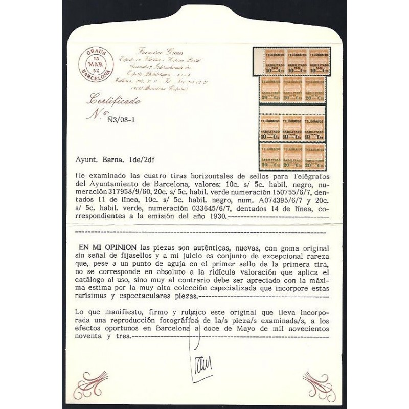 OTHER SPECIALITIES>Barcelona>Barcelona Telegraph Stamps >1929 ED. Barcelona - Telégrafos 01/02sth y 01/02dsth **