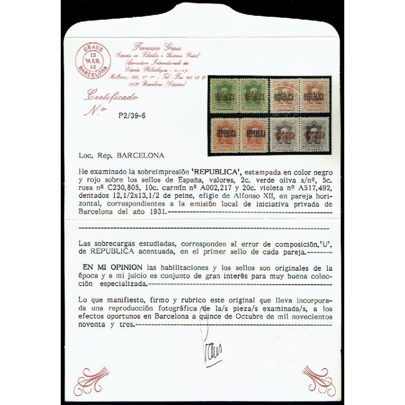 LOCAL WAR STAMPS AND CANARY ISLANDS AIR MAIL>Republican Local War Stamps>Barcelona>1931 ED. ELR Barcelona 01/04 + 01hea/04hea **