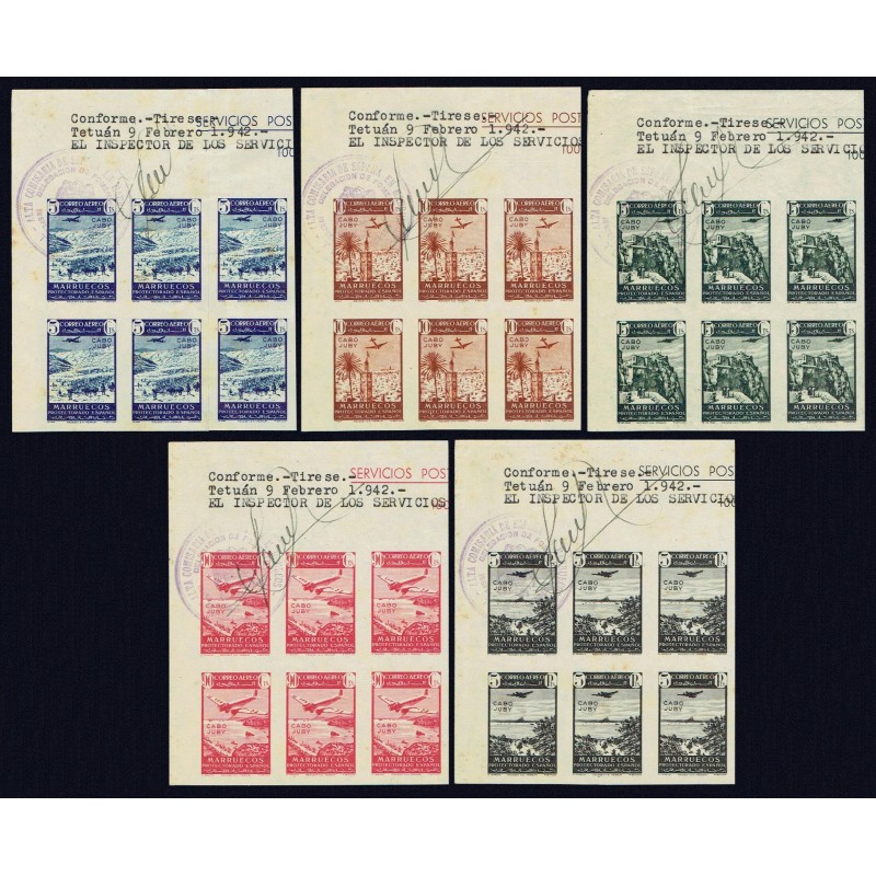 Morocco stamps overprinted. Landscapes and aircraft in flight. Air Mail.