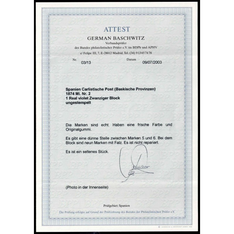 Don Carlos. Carlist post for Basque Provinces and Navarra.