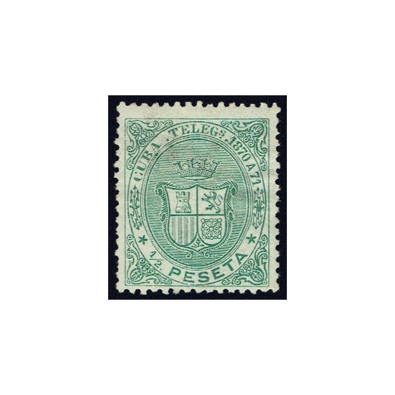 Coat of arms of Spain with mural crown and caption "1870 A 71".