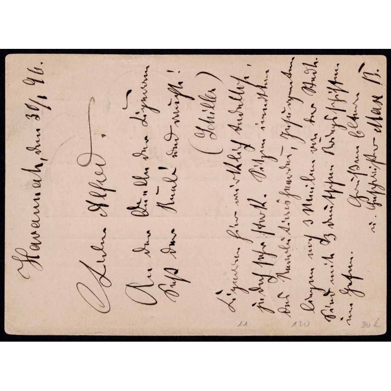 Alfonso XII. Caption "CUBA". Cards for the countries of the Universal Postal Union. 1896 Havana (Cuba)-Lübeck (Germany).