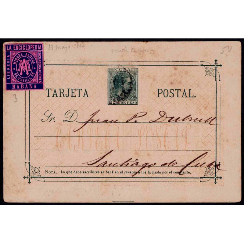 Alfonso XII. Caption "CUBA". 1884 Havana-Santiago de Cuba (Cuba).