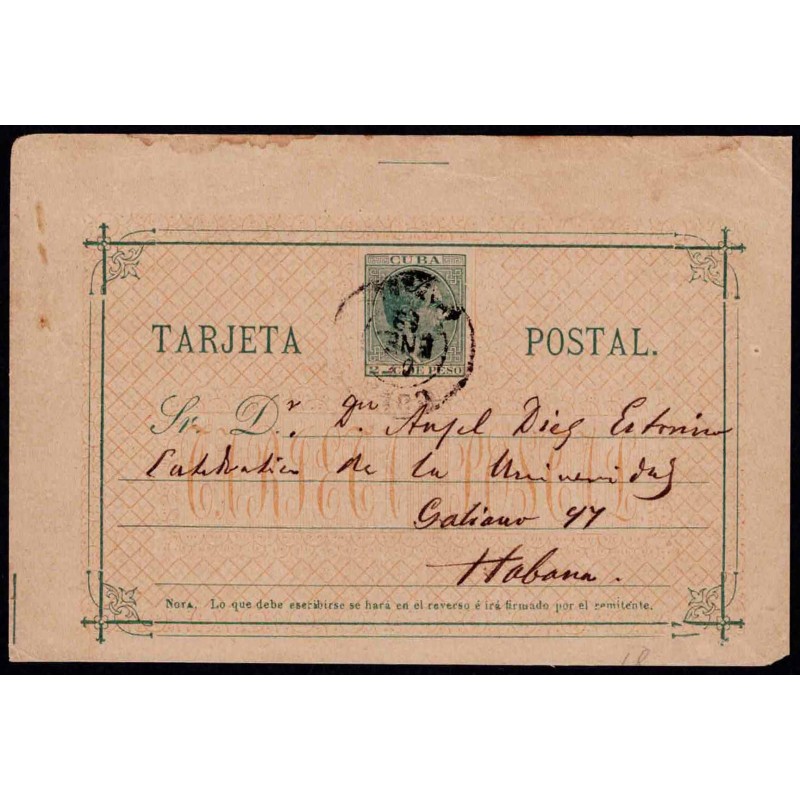 Alfonso XII. Caption "CUBA". 1888 Innenpost Havana (Cuba).