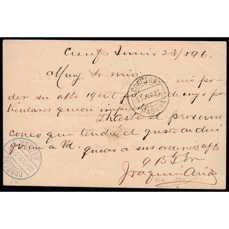 Alfonso XIII. Child type. Caption "ISLA DE CUBA". 1896 Cienfuegos-Havana (Cuba).