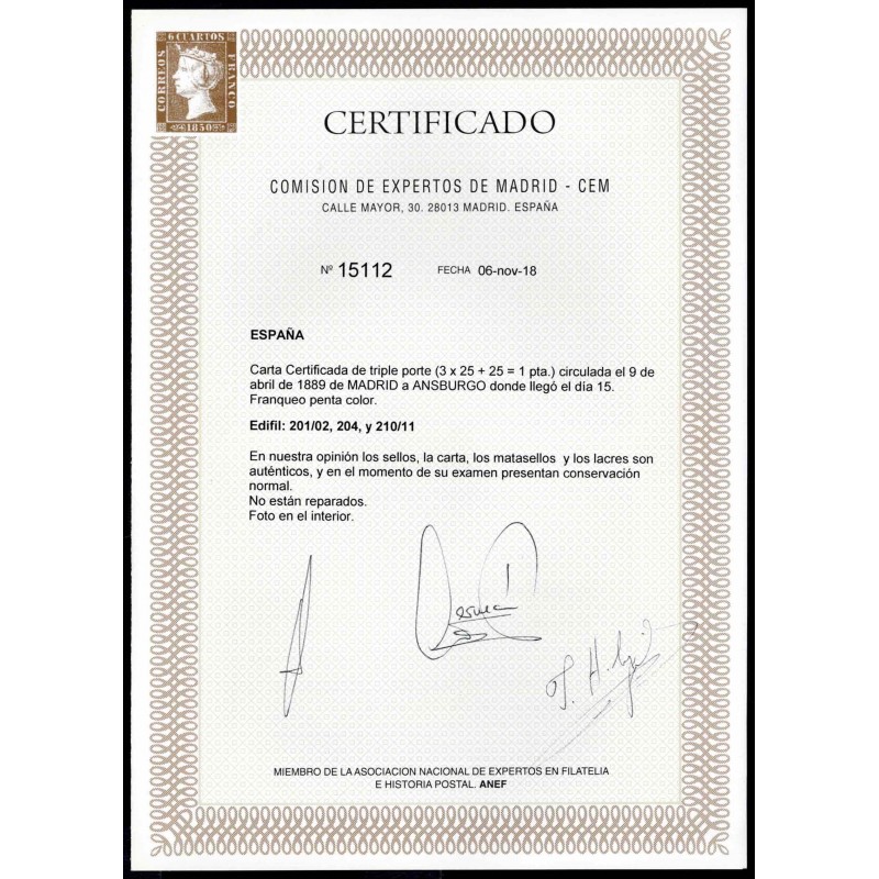 1889 Madrid-Augsburg (Bavaria, Germany).
