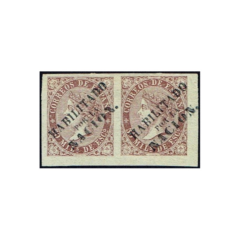 Queen Isabella II. Handstamp overprint HABILITADO POR LA NACION.