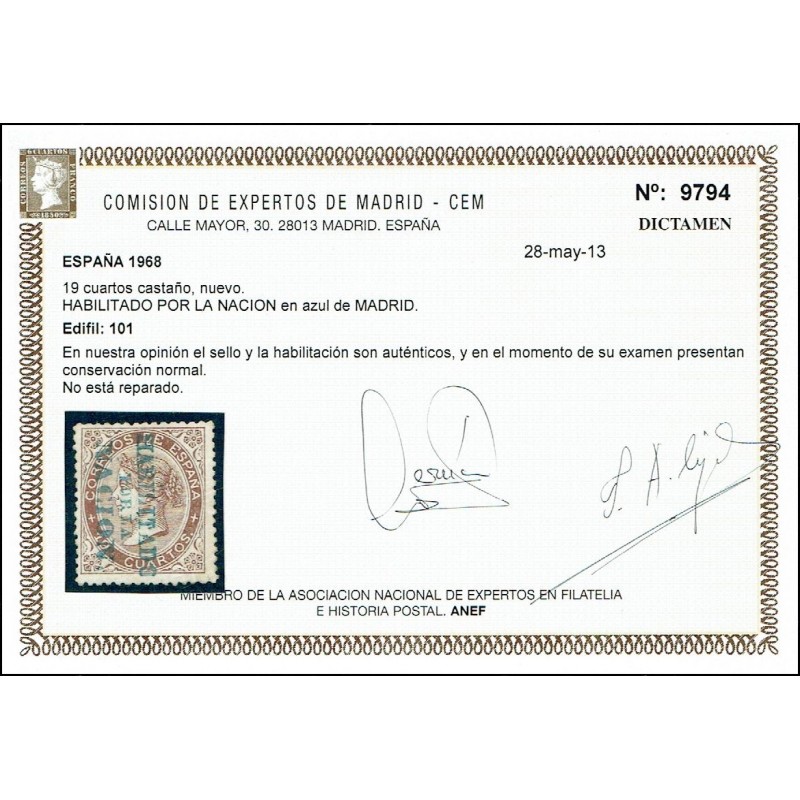 Queen Isabella II. Handstamp overprint HABILITADO POR LA NACION.