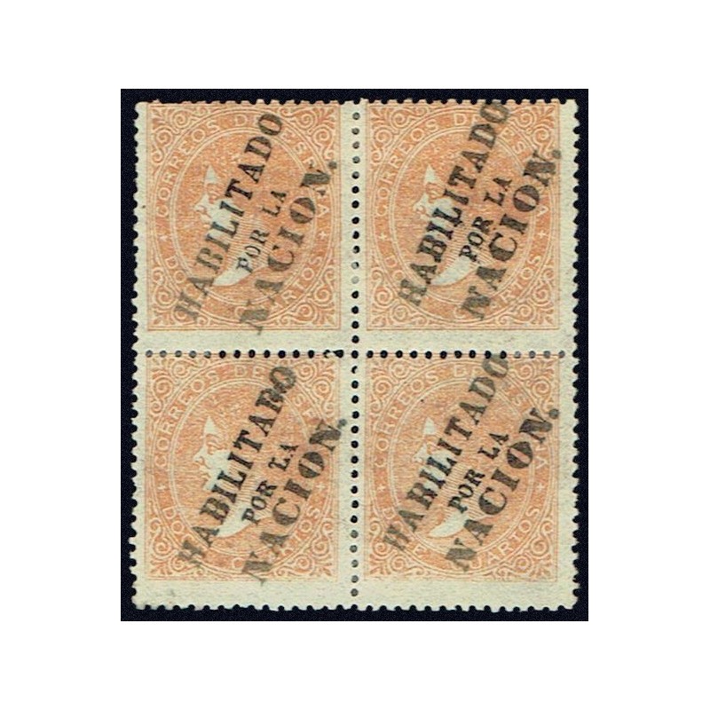 Queen Isabella II. Handstamp overprint HABILITADO POR LA NACION.