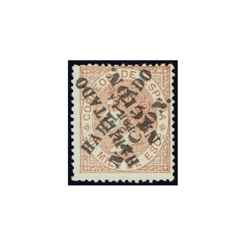 Printing review and Queen Isabella II. Handstamp overprint HABILITADO POR LA NACION.
