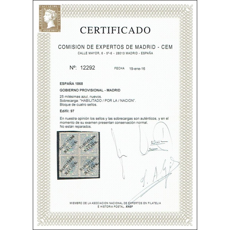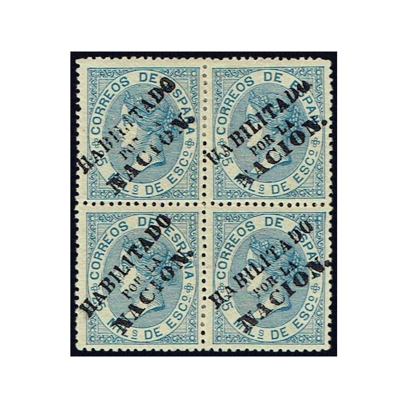 Queen Isabella II. Handstamp overprint HABILITADO POR LA NACION.