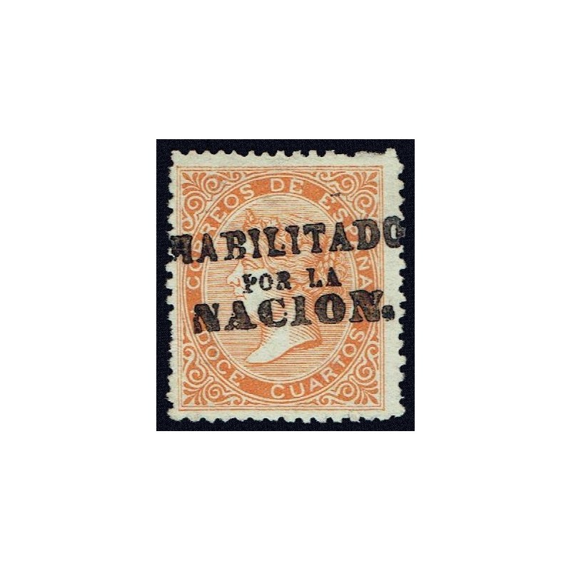 Queen Isabella II. Handstamp overprint HABILITADO POR LA NACION.