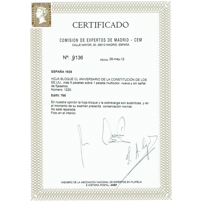 150th anniversary of the Constitution of North America. Air Mail. Souvenir sheet.