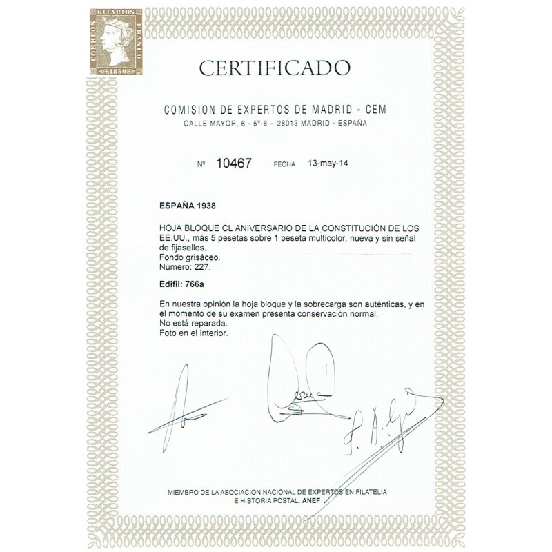 150th anniversary of the Constitution of North America. Air Mail. Souvenir sheet.