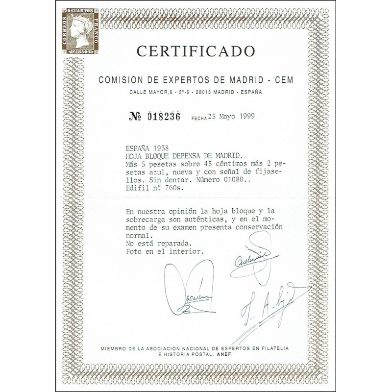 For the defense of Madrid. Air mail. Souvenir sheet.