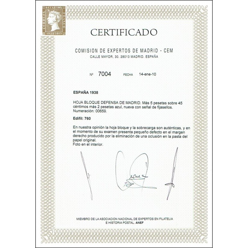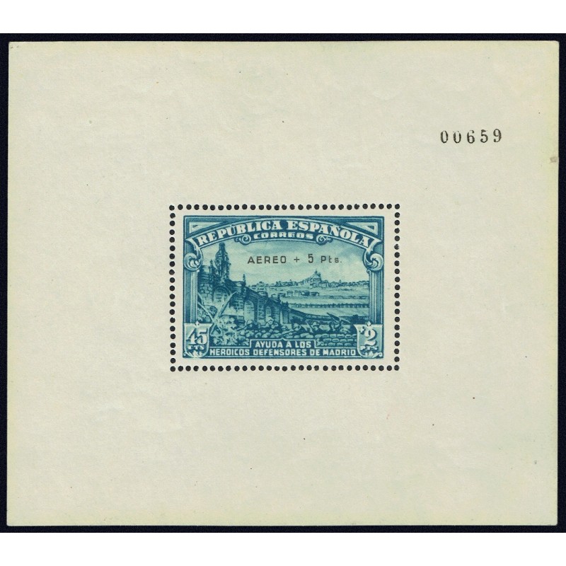 For the defense of Madrid. Air mail. Souvenir sheet.