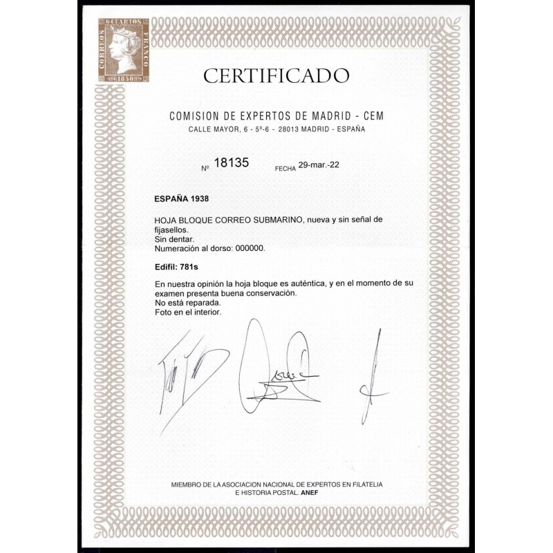 Postal relation by submarine between Barcelona and Mahón (Menorca). Souvenir sheet.